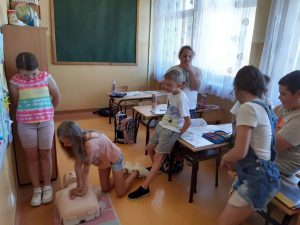 Zbliżają się wakacje, dlatego naszą szkołę odwiedzili policjanci, aby przypomnieć uczniom zasady bezpiecznego zachowania się podczas letniego wypoczynku. Wszyscy utrwalili sobie zasady poruszania się na drodze i właściwego przechodzenia przez jezdnię; zasady ograniczonego zaufania w stosunku do obcych; jak bezpiecznie i prawidłowo jeździć rowerem oraz jak zachować bezpieczeństwo w domu podczas nieobecności rodziców; jak rozważnie korzystać z kąpielisk w okresie wakacji.