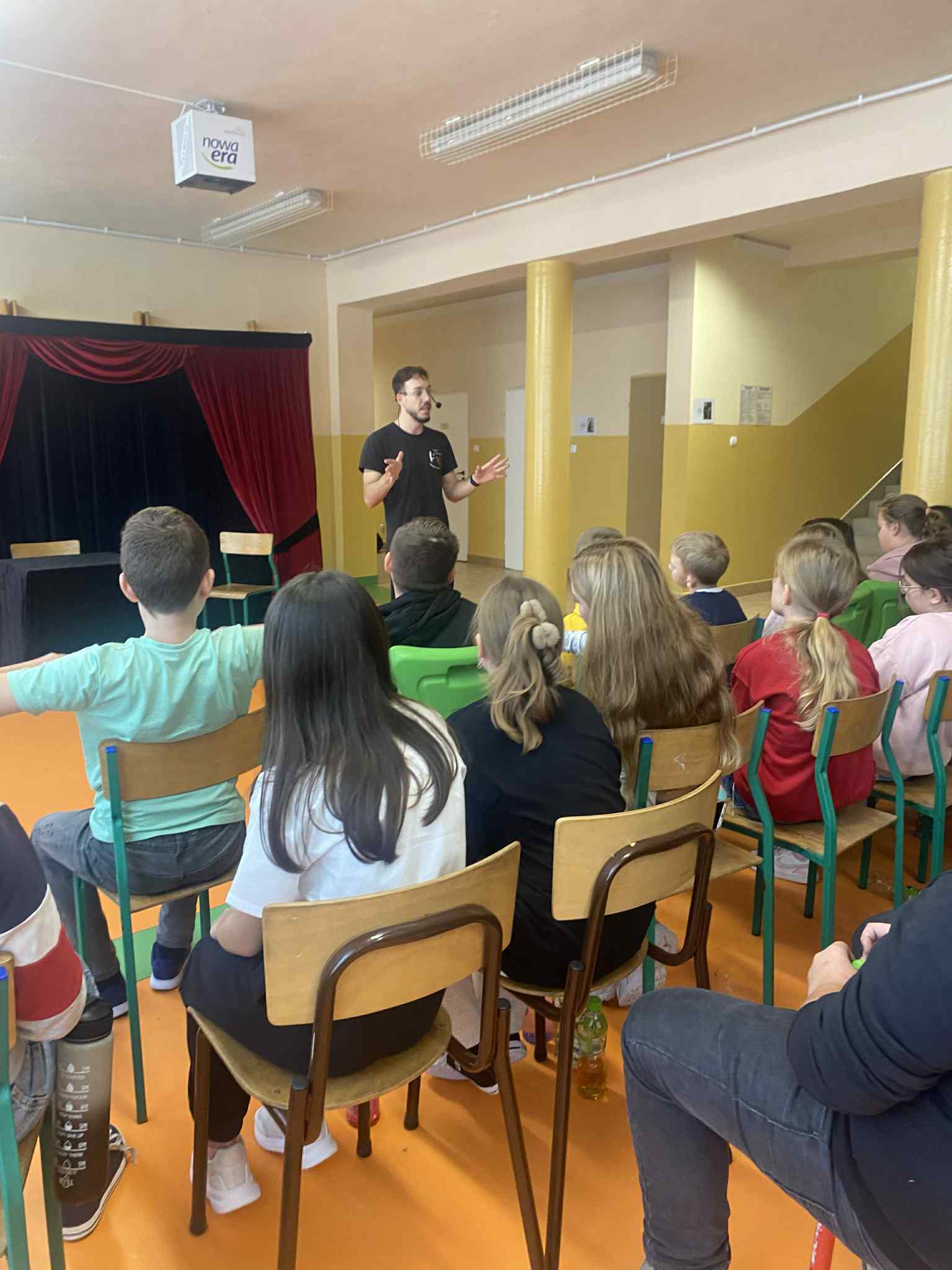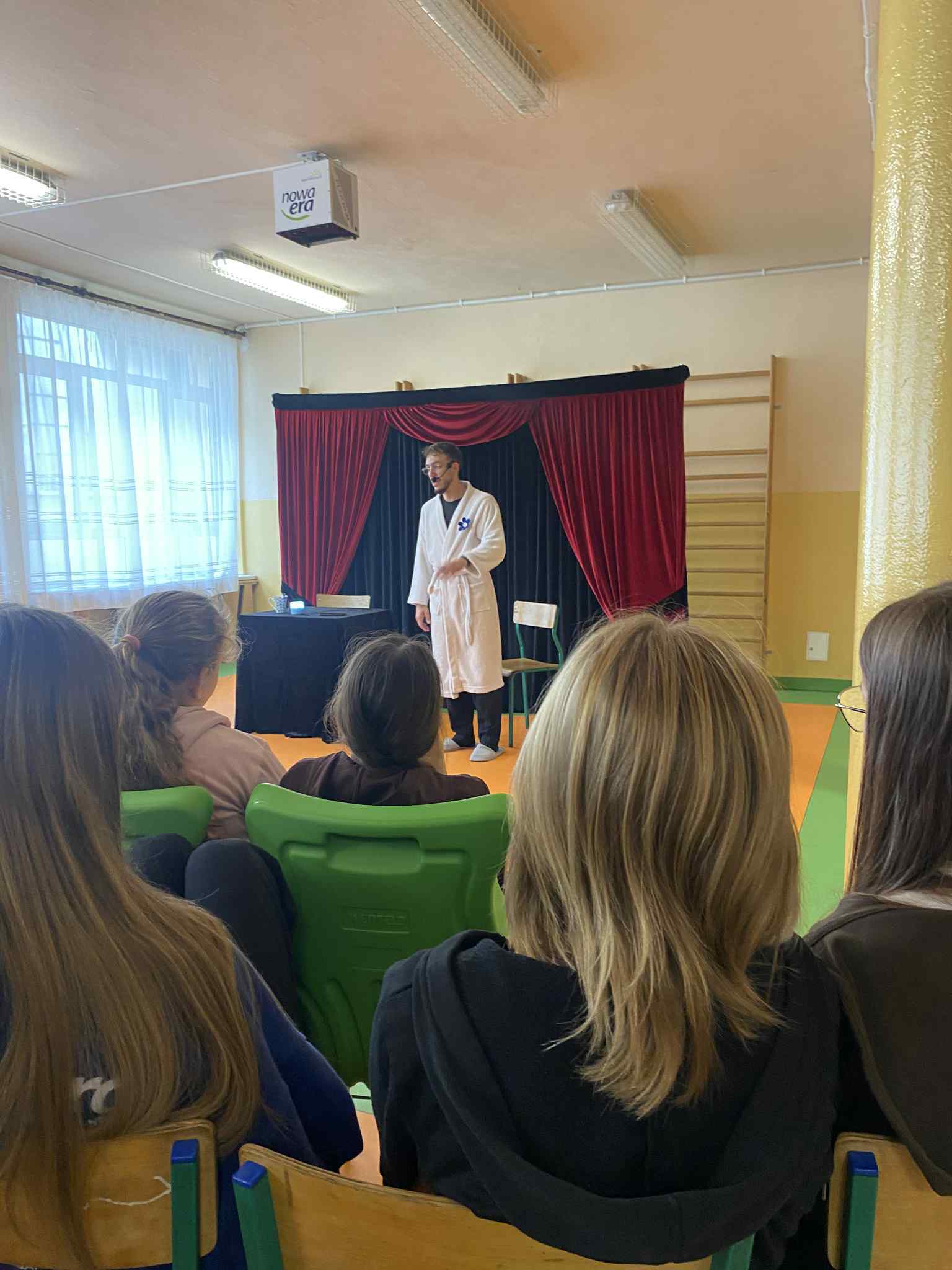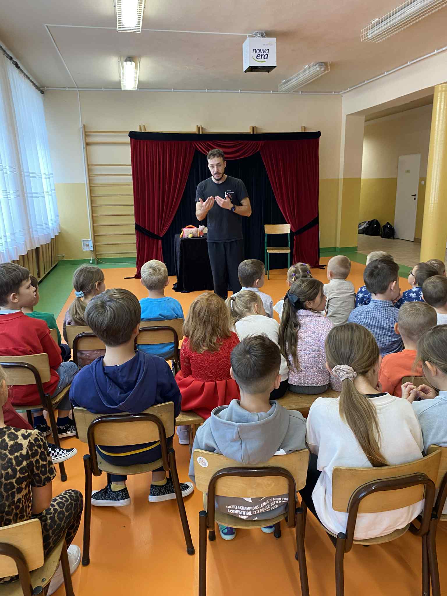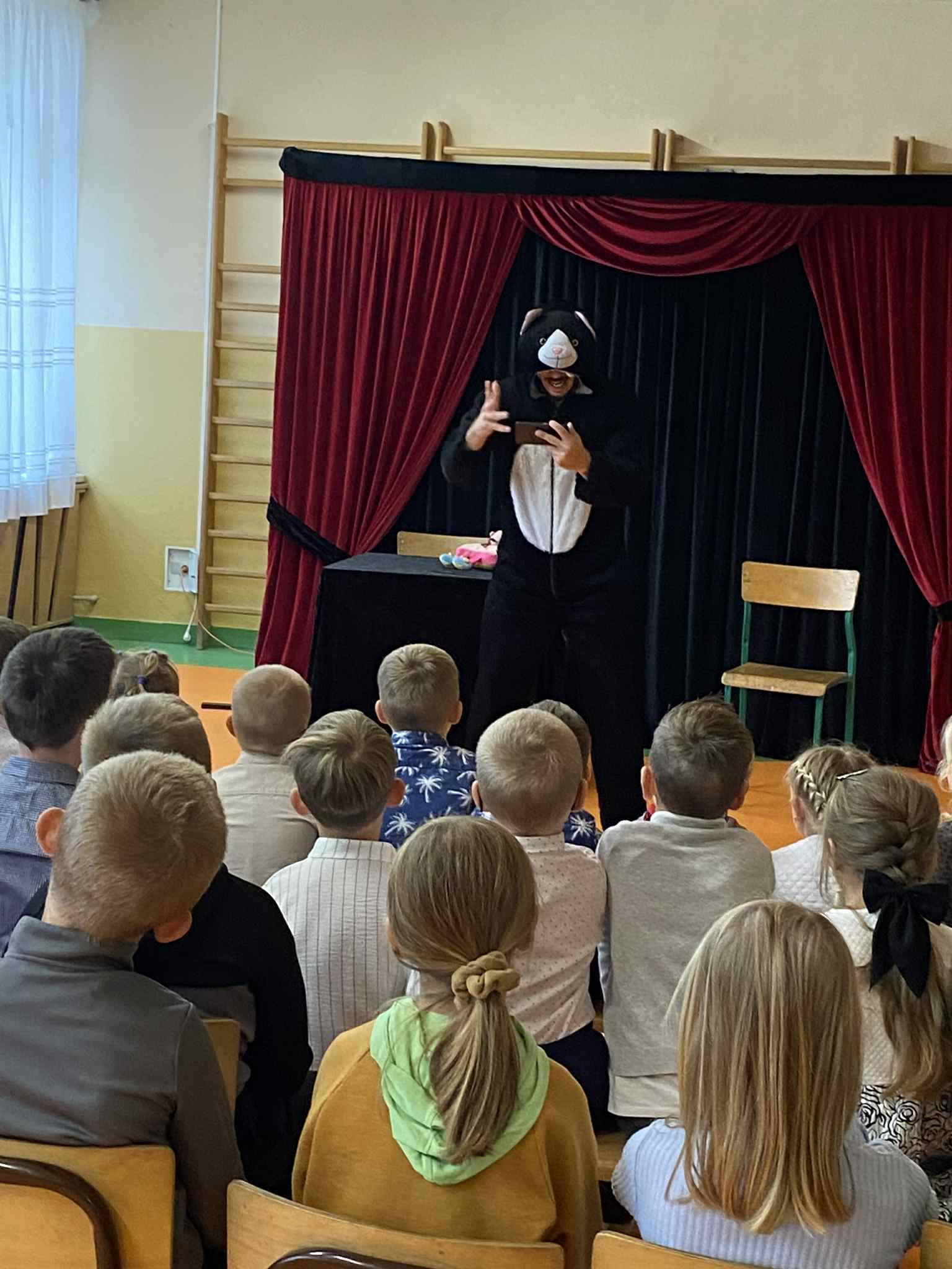 01 października 2025 r. uczniowie naszej szkoły obejrzeli dwa spektakle profilaktyczne w wykonaniu Teatru Kurtyna z Krakowa. Dla dzieci z klas 0-III wystawiona została sztuka pt. „Mruczek – kot, który bał się myszy”, z kolei dla  starszych wychowanków zaprezentowano widowisko teatralne pt. ,,Smart Home’’. Obydwa występy cieszyły się ogromnym zainteresowaniem wśród uczestników. Przedstawiona historia kota Mruczka opowiadała o  przyjaźni i współpracy, ale także o odpowiedzialnym korzystaniu z  urządzeń elektronicznych oraz szacunku dla różnorodności i potrzeb innych istot. Natomiast w przedstawieniu dla trzecioklasistów ukazano skutki zaawansowanej sztucznej inteligencji na życie człowieka, manipulację informacjami (fake news) oraz ślepe zaufanie do informacji przedstawianych w Internecie.  Z pewnością dzięki tym dwóm pouczającym inscenizacjom nasi podopieczni przypomnieli sobie jak ważny jest szacunek, empatia, akceptacja oraz rozsądek i świadome korzystanie ze współczesnych  technologii.