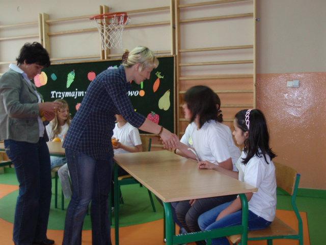 Uczniowie otrzymali nagrody: owoce i soczki oraz poszerzyli wiedzę na temat zdrowia.